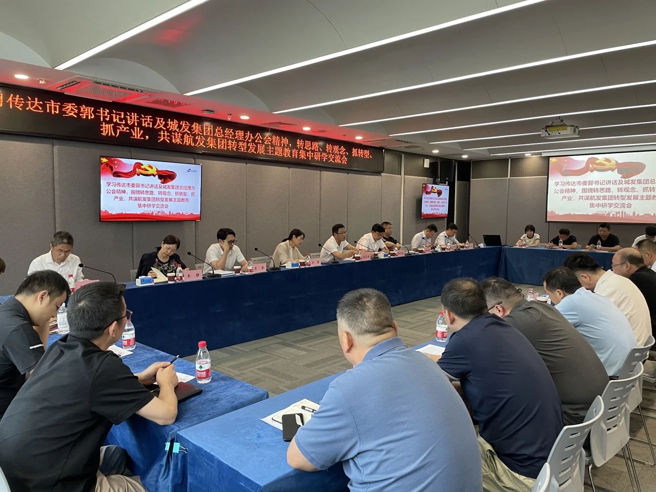 7月10日下午,航發(fā)集團(tuán)學(xué)習(xí)傳達(dá)市委郭書(shū)記講話及城發(fā)集團(tuán)總經(jīng)理辦公會(huì)精神,圍繞轉(zhuǎn)思路、轉(zhuǎn)觀念、抓產(chǎn)業(yè)、抓創(chuàng)收,開(kāi)展主題教育集中研學(xué)交流會(huì),共謀航發(fā)集團(tuán)轉(zhuǎn)型發(fā)展新路徑。航發(fā)集團(tuán)領(lǐng)導(dǎo)班子、所屬各單位負(fù)責(zé)人及集團(tuán)全體主辦、協(xié)辦共計(jì)50人參會(huì)。